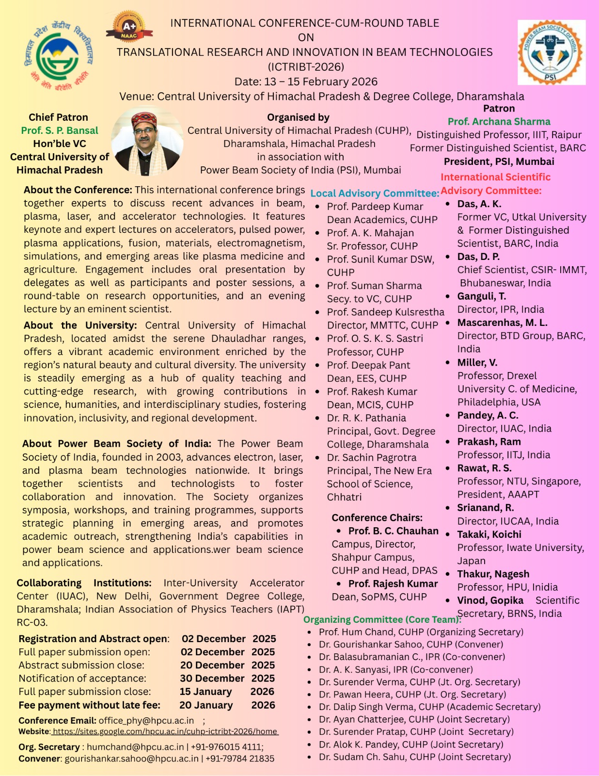 The Central University of Himachal Pradesh is established under the Central Universities Act 2009 (No. 25 of 2009) enacted by the Parliament. The University is funded and regulated by the University Grants Commission (UGC). The University became functional with the assumption of charge by the first Vice Chancellor on 20th January 2010.