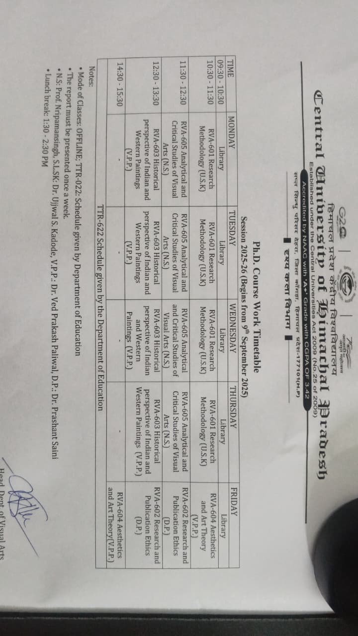 Ph.D. (Visual Arts) Course Work, Academic Session 2025-26