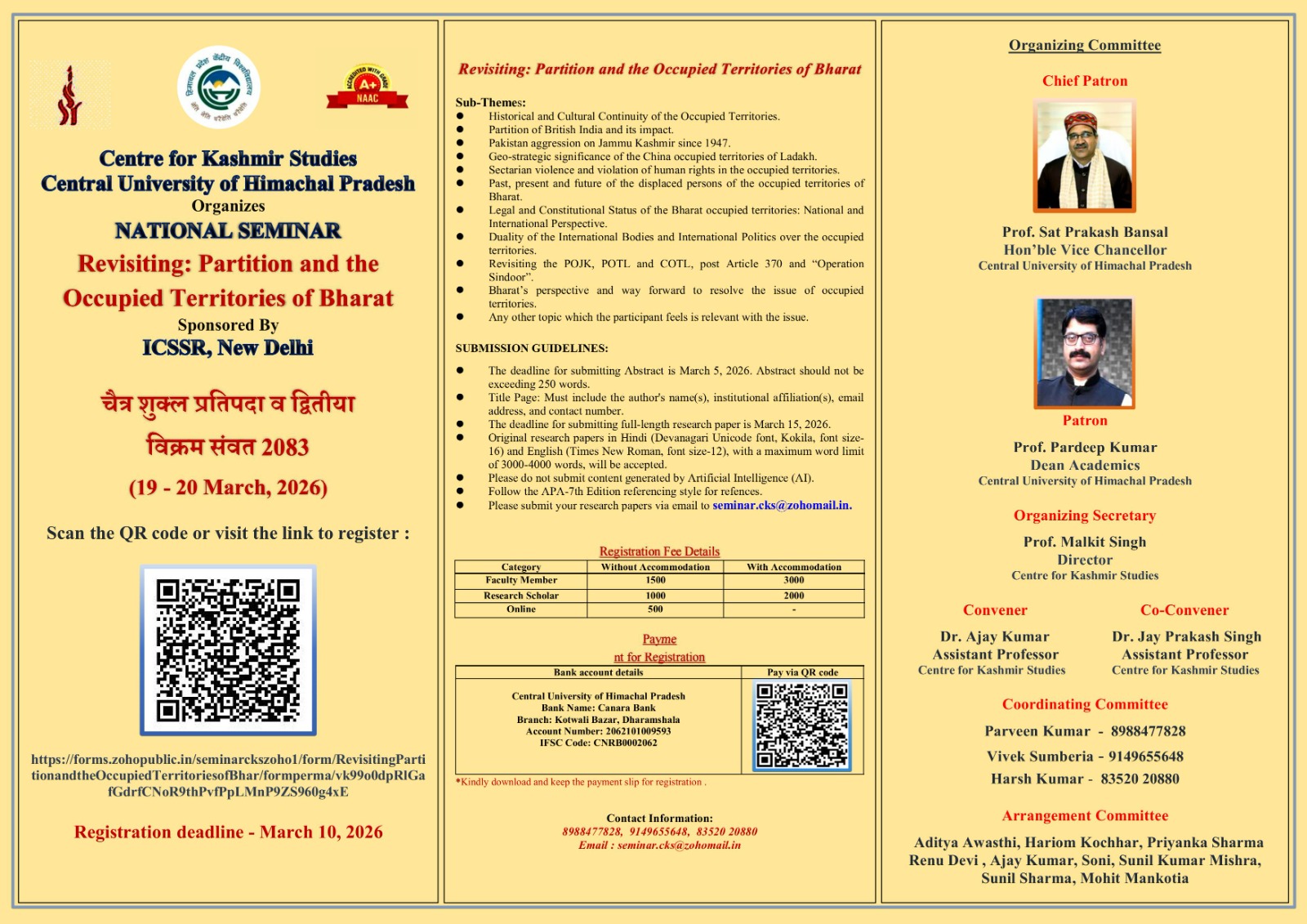 The Central University of Himachal Pradesh is established under the Central Universities Act 2009 (No. 25 of 2009) enacted by the Parliament. The University is funded and regulated by the University Grants Commission (UGC). The University became functional with the assumption of charge by the first Vice Chancellor on 20th January 2010.